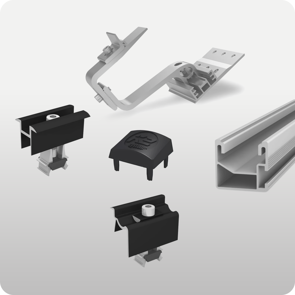Von Microwechselrichter, Halterung, Schienen, Speicher, Stringkabel bis MC4 Stecker und Module von namenhaften Herstellern wie Anker, Growatt, Trina vertex, Hoymiles.